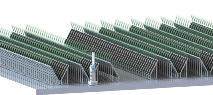 根系表型检测平台,集成了植株生长根盒阵列、自动浇灌装置、智能行走检测机器人、远程终端控制模块、工作站模块、云端存储模块、及智能图像采集和分析模块,可实现高通量、全自动根系表型的采集和分析(地上+地下)。